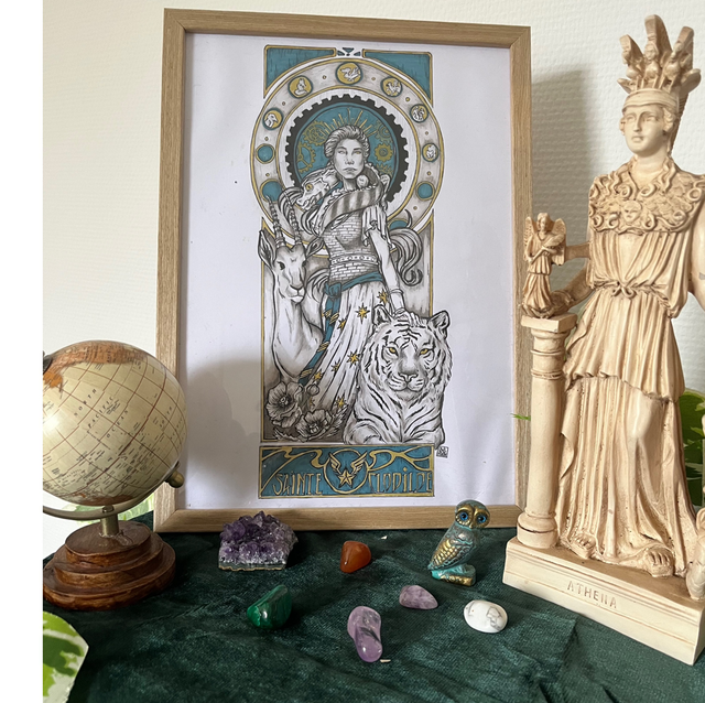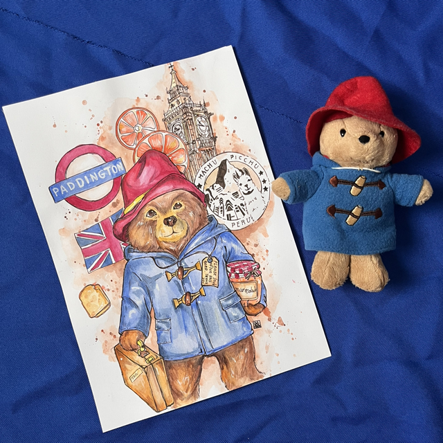 La déesses Iris et l’ours Paddington est réalisé à l’aquarelle et au stylo noir